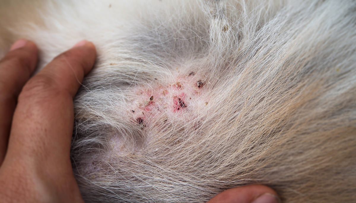 Läuse bei Hunden sind kleine, flügellose Insekten, die sich im Fell einnisten. Sie sind etwa 1 bis 2 mm gross und haben einen flachen Körper. Ihre Eier (Nissen) sind oft im Haar des Hundes zu finden.