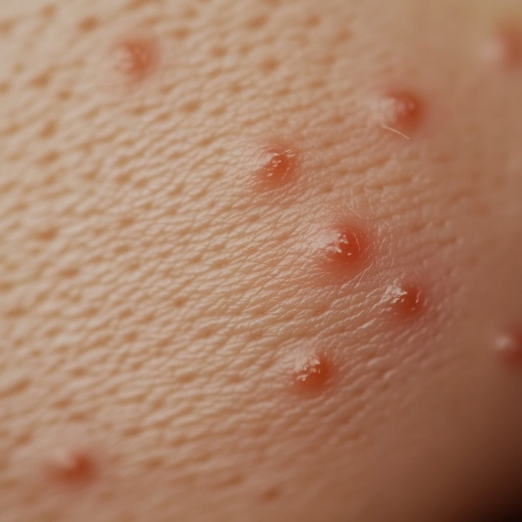 Flohbiss: Flöhe beissen oft in Gruppen oder Reihen, besonders an den Beinen, Knöcheln und Füssen. Die Bisse sind klein, rot und verursachen intensiven Juckreiz. Sie können sekundäre Infektionen hervorrufen, wenn sie aufgekratzt werden.