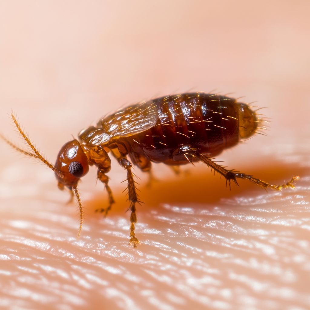 Flöhe sind winzige, bräunliche Insekten, die etwa 1-3 mm gross sind. Sie haben einen flachen Körper, was ihnen hilft, sich durch das Fell von Tieren zu bewegen. Auf der menschlichen Haut sind sie schwer zu erkennen, aber ihre Bisse sind sichtbar.