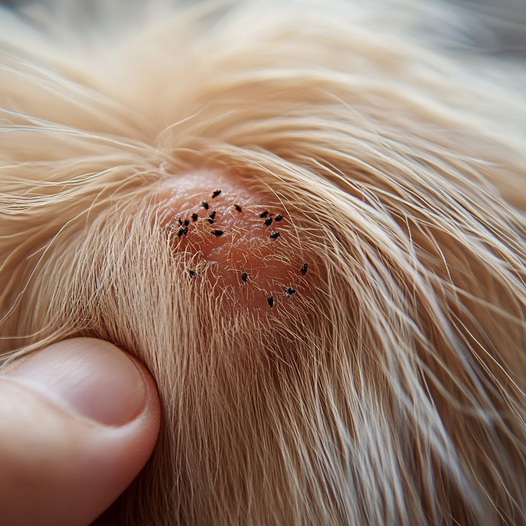 Flöhe auf der Kopfhaut sind klein und können sich in den Haaren verstecken. Sie können Juckreiz und Irritationen verursachen, sind aber oft schwer zu erkennen. Flohkot kann als kleine schwarze Punkte sichtbar sein.