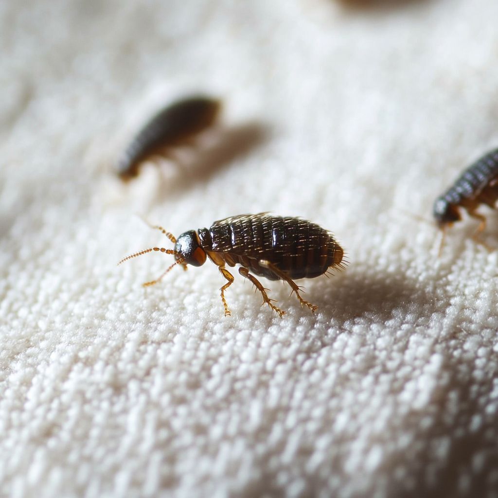 Wanzen sind flach und oval, ähnlich wie Flöhe, aber oft grösser und haben eine andere Färbung. Während Flöhe schwarz oder dunkelbraun sind, können Wanzen rot oder braun erscheinen. Beide Arten haben unterschiedliche Lebenszyklen und Verhaltensweisen, aber die Optik kann ähnlich sein. Es ist wichtig, sie zu unterscheiden, um eine effektive Behandlung einzuleiten.