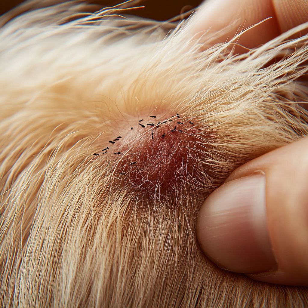 Zeckenbiss: Zeckenbisse sind oft weniger sichtbar, können aber zu Hautrötungen, Schwellungen und intensivem Juckreiz führen. Sie befallen bevorzugt weiche Hautstellen wie Bauch, Oberschenkel und Arme und können allergische Reaktionen auslösen.